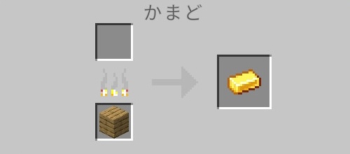 金鉱石・金の原石をかまどで焼くと、金インゴットが入手できます。