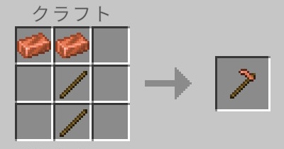 銅のクワのクラフトには、銅インゴットと木の棒が必要です。
