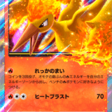 | カードの解説 | 羽ばたくと 翼の 炎が 赤く 美しく きらめく 伝説の 鳥ポケモンの 1匹。 |